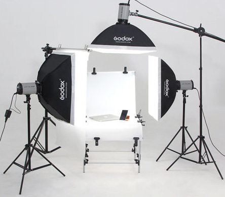 三燈布光,一盞燈在右側後方打亮酒杯,另一盞燈打頂燈打亮手機屏幕,第三盞燈在左側前方45°補光。
